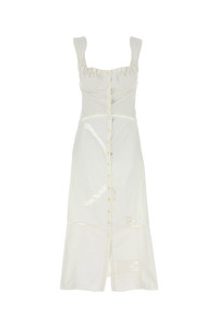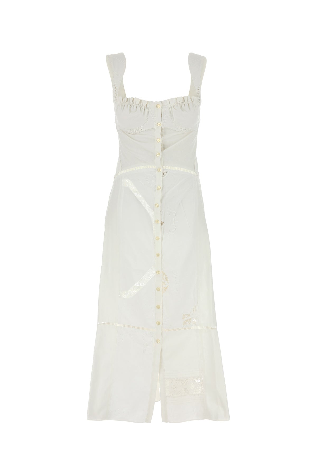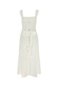 Midi-length dress realized in pure cotton characterized by peculiar tonal embroideries at the front and at the back. - Sweetheart neckline - Buttons closure at the front - Half-belt - Unlined DETAILS White cotton dress Exterior: 100% Cotton Made in romania Sample size: 38