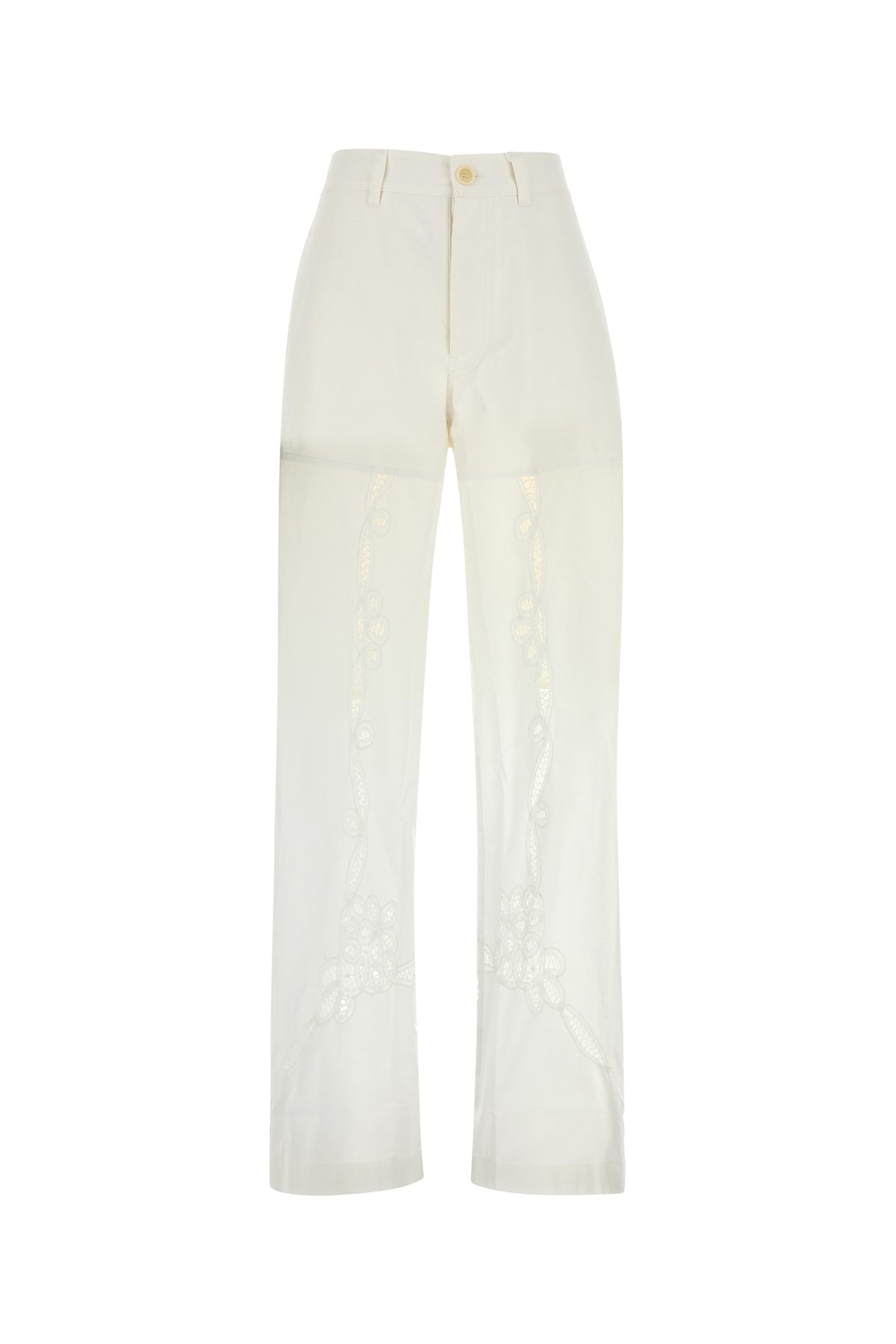 Pant realized in pure cotton characterized by peculiar tonal embroidery at the front and at the back. - Belt loops at the waist - Concealed buttons and single visible button - Seam pockets and two patch pocket at the back DETAILS White cotton pant Exterior: 100% Cotton Made in romania Sample size: S