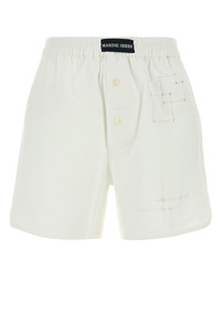 Shorts realized in pure cotton enriched by contrasting logoed bale at the front. - Elastic waist - Opening with buttons at the front DETAILS White cotton shorts Exterior: 100% Cotton Made in romania Sample size: XS