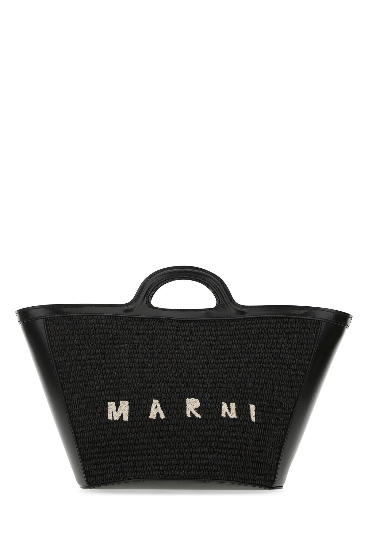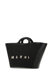 TROPICALIA SMALL BAG IN BLACK LEATHER AND RAFFIA