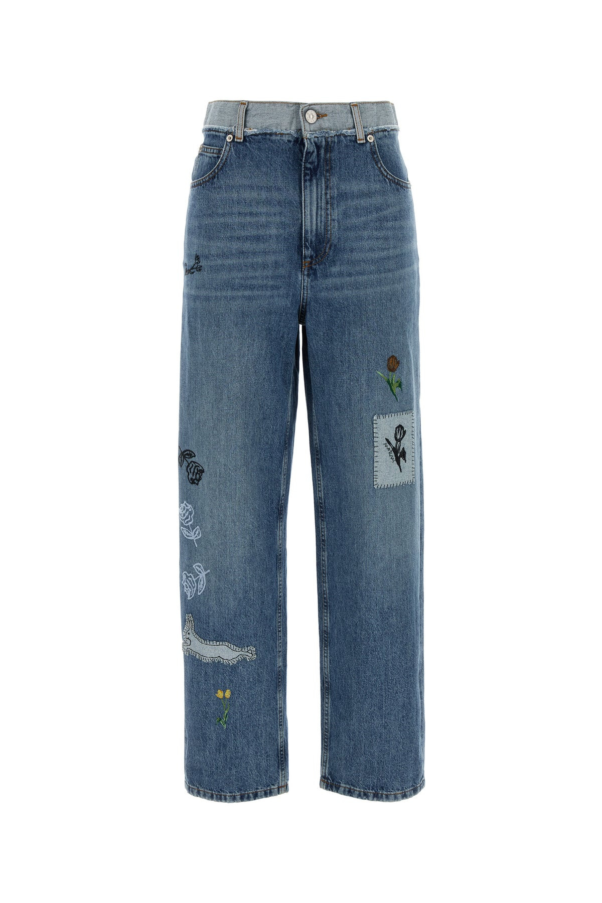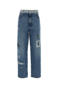 Jeans realized in stonewashed pure cotton denim characterized by floral embroidery on the entire surface. - Belt loops at the waist - Concealed zip and single visible button closure - Five classic pockets - Contrasting logoed label at the back DETAILS Denim jeans Exterior: 100% Cotton Made in italy Sample size: 38
