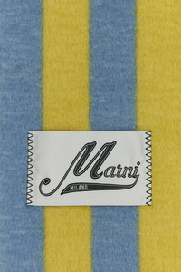 Scarf realized in wool blend characterized by striped embroidery on the entire surface enriched by logoed label on the hemline. - Fringed edges DETAILS Embroidered wool blend scarf Exterior: 46% Wool 20% Nylon 17% Mohair 17% Alpaca Made in italy Width: 185 cm Height: 20 cm