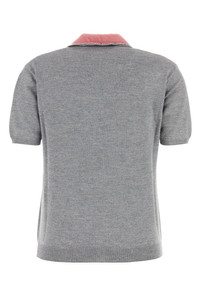 Polo shirt realized in pure virgin wool characterized by contrasting collar. - Partial buttons closure - Ribbed cuffs and hemline DETAILS Grey wool polo shirt Exterior: 100% Virgin wool Made in italy Sample size: 38