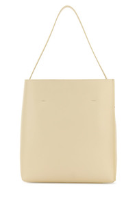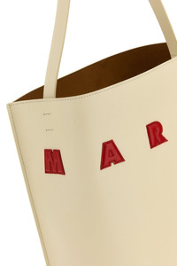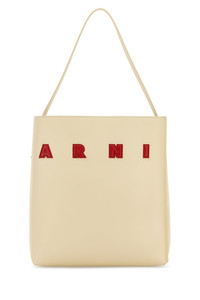 Handbag realized in smooth bovine leather enriched by contrasting leather logoed patch at the front. - Tonal leather flat handle - Lined interior with a zip pocket DETAILS Ivory leather medium Museo shoulder bag Exterior: 100% Bovine leather Lining: 95% Polyester 5% Polyurethane Made in italy Width: 30,5 cm Height: 34 cm Depth: 11,5 cm Handle height: 25 cm