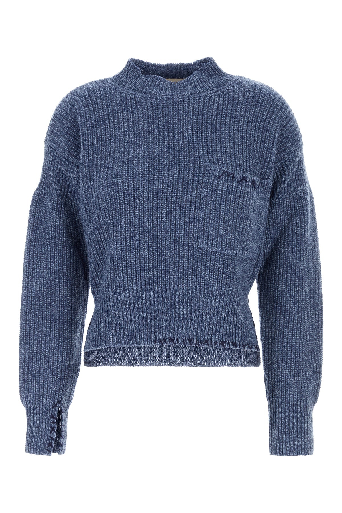 Sweater realized in pure virgin wool characterized by embroidered logo on the chest and stitchings on the hemline. - Mock turtleneck - Chest pocket - Lateral slits on the hemline DETAILS Melange blue wool sweater Exterior: 100% Virgin wool Made in italy Sample size: 38