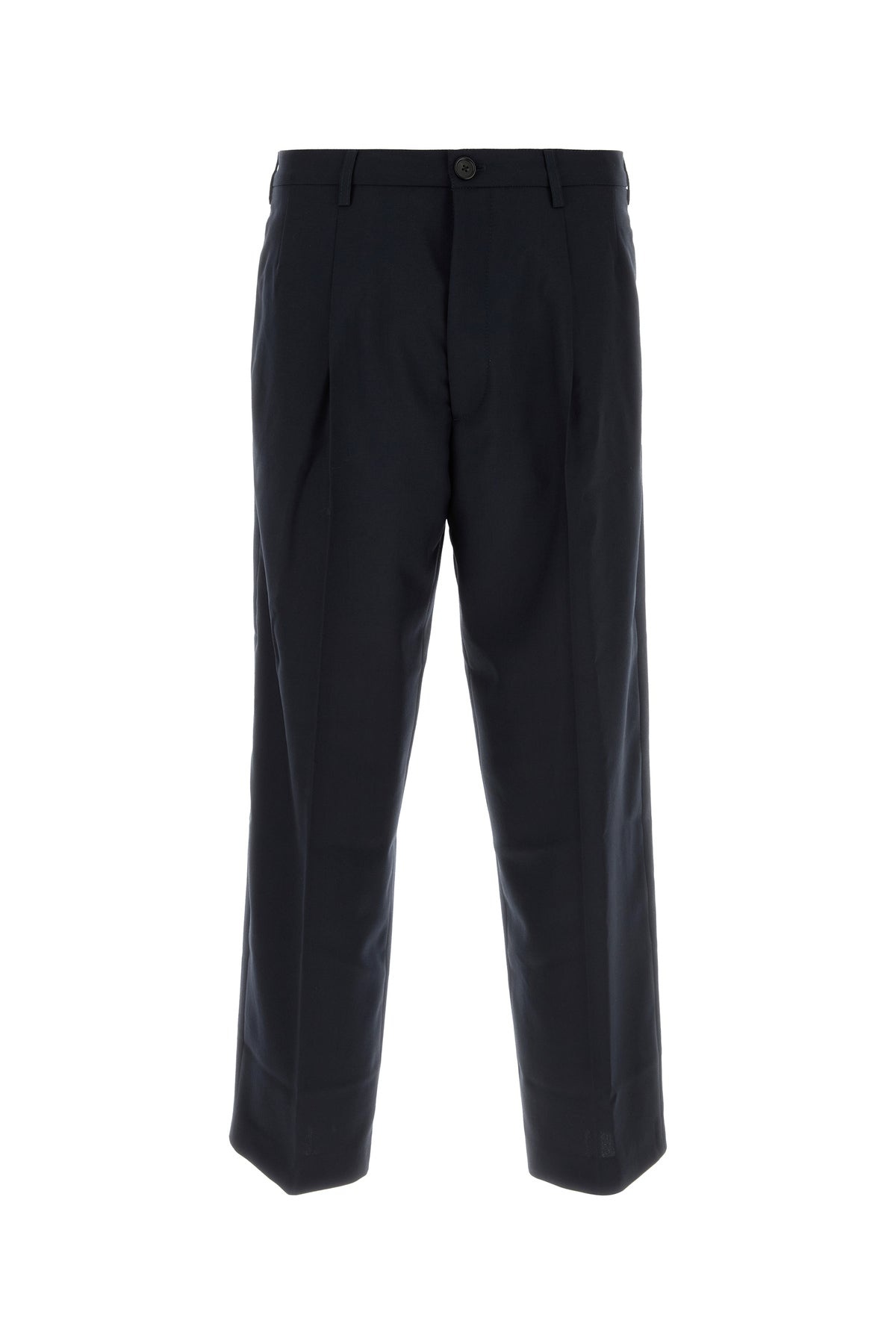 Pant realized in pure virgin wool characterized by inverted pleats. - Belt loops at the waist - Concealed buttons and single visibile button closure - Seam pockets and two slit pockets DETAILS Midnight blue wool pant Exterior: 100% Virgin wool Made in italy Sample size: 48
