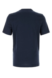 T-shirt realized in pure cotton jersey enriched by tonal logoed label on the chest. - Ribbed crew-neck DETAILS Navy blue jersey t-shirt Exterior: 100% Cotton Made in italy Sample size: 48