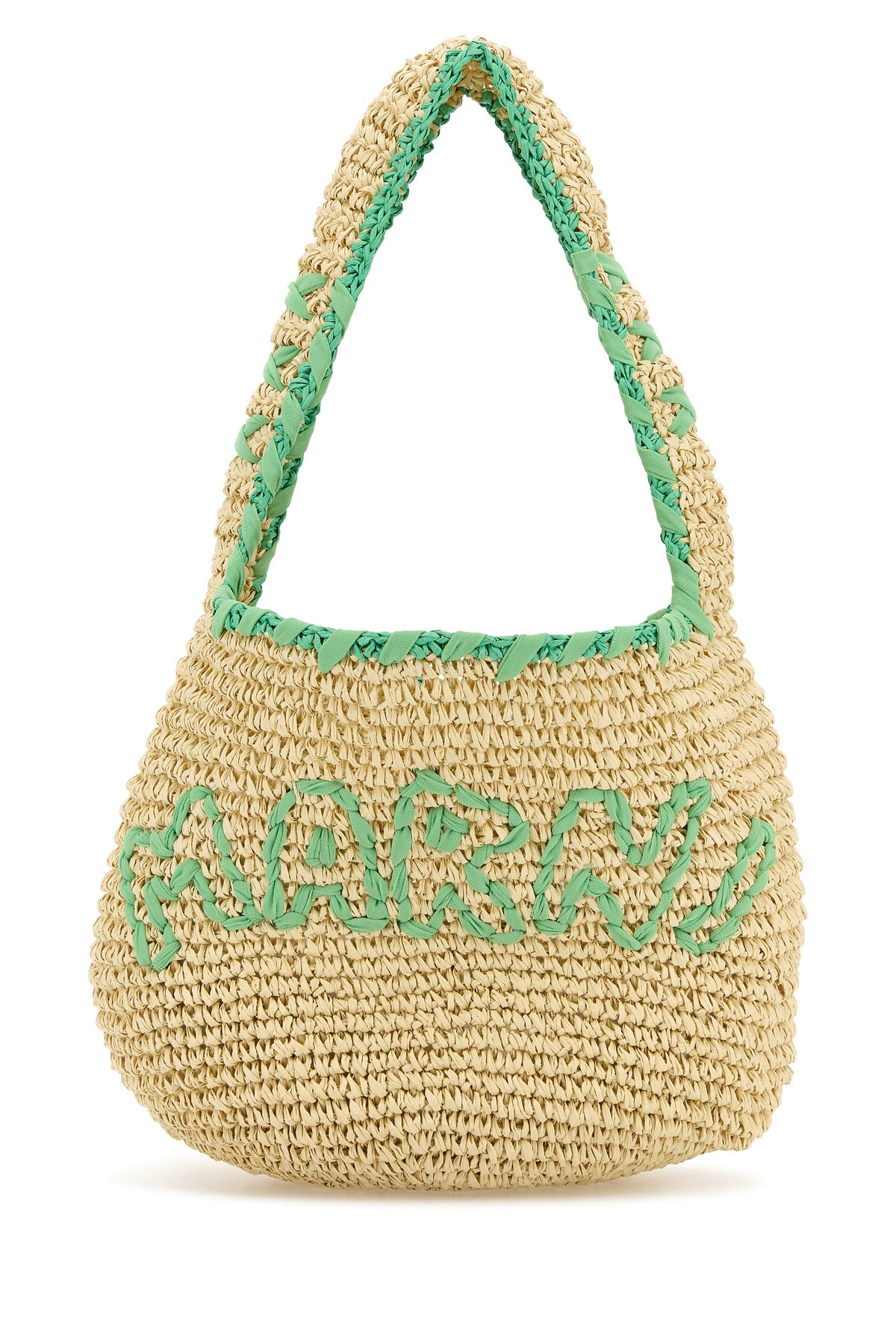 Shoulder bag realized in woven raffia characterized by embroidered logo at the front and contrasting stitchings on the trimmings. - Built-in handle - Unlined DETAILS Raffia small Nassa shoulder bag Exterior: 100% Paper Made in indonesia Width: 36 cm Height: 28 cm Depth: 18 cm Handle height: 25 cm