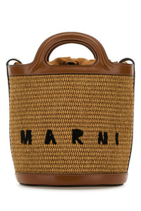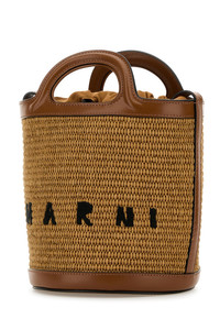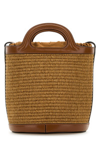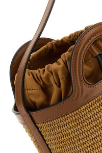 TROPICALIA MINI BUCKET BAG IN BROWN LEATHER AND RAFFIA