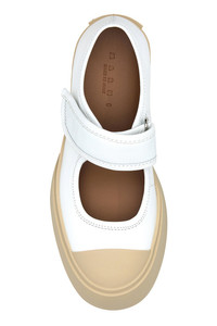 Sneakers realized in polished-finish slightly pebble leather characterized by contrasting logo in relief at the back. - Rubberized round toe - Velcro strap closure - Embossed logo on the inside - Oversize sole DETAILS White leather Mary Jane sneakers Exterior: 100% Leather Interior: 100% Leather Sole: Rubber Made in italy Sole height: 5 cm