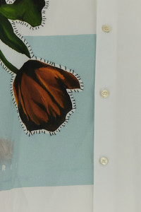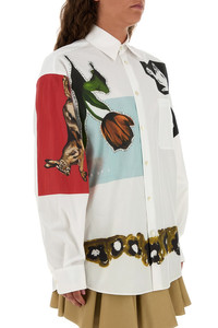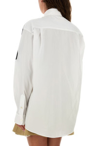 Shirt realized in pure cotton poplin characterized by peculiar print at the front. - Italian collar - Buttons closure - A chest pocket - Rounded cuffs with button - Rear yoke DETAILS White poplin shirt Exterior: 100% Cotton Made in italy Model is 170 cm and is wearing a size 38