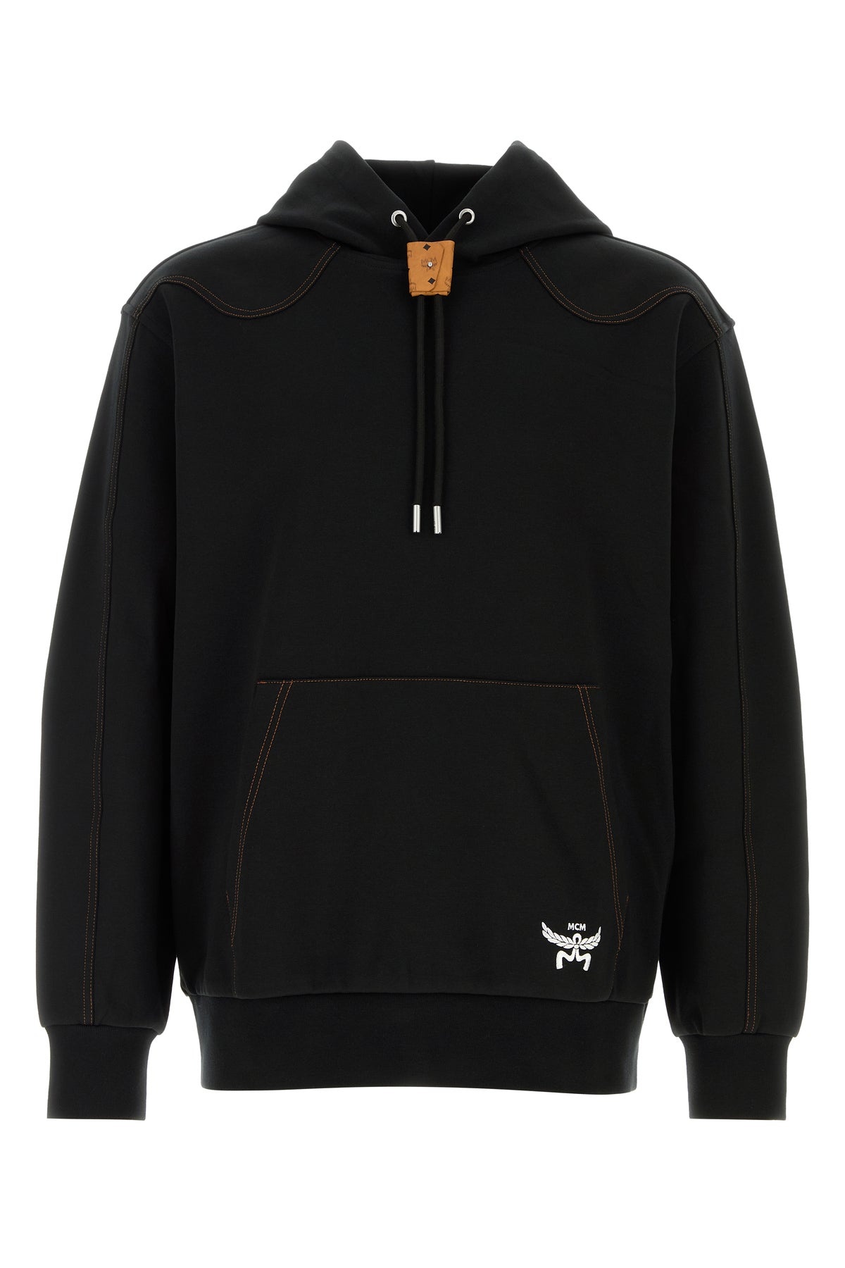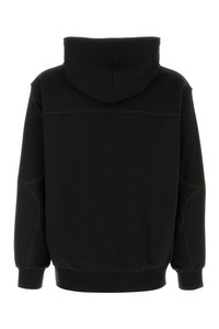 Sweatshirt realized in stretch polyester blend characterized by contrasting logoed embroidery on the hemline. - Drawstring hood - Pouch pocket - Ribbed cuffs and hemline DETAILS Black stretch polyester blend sweatshirt Exterior: 52% Polyester 42% Cotton 3% Elastane Made in korea Sample size: M