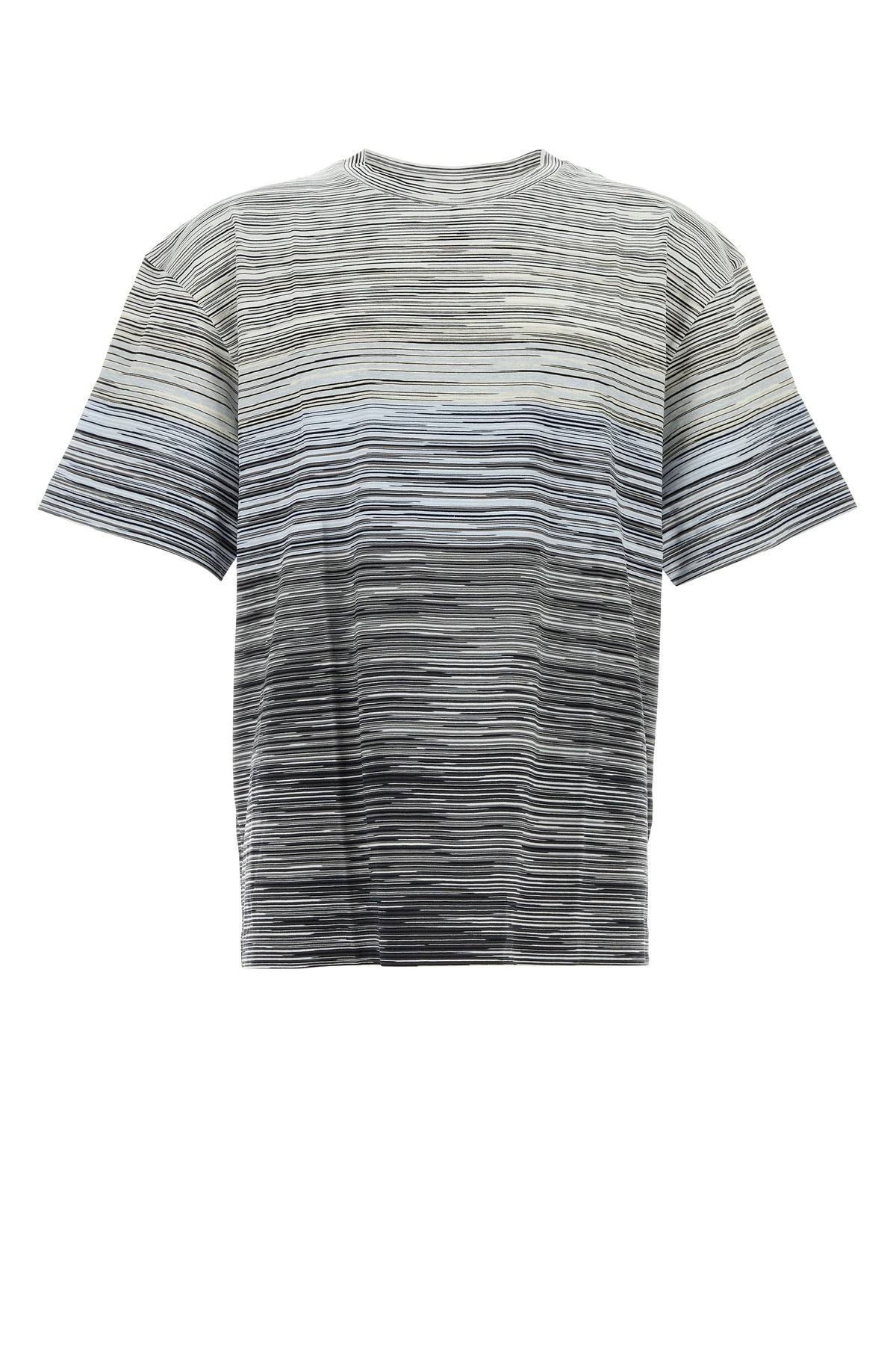 T-shirt realized in pure cotton characterized by striped embroidery on the entire surface and rubberized printed logo at the back. - Ribbed crew-neck - Loose fit DETAILS Embroidered cotton t-shirt Exterior: 100% Cotton Made in romania Sample size: M