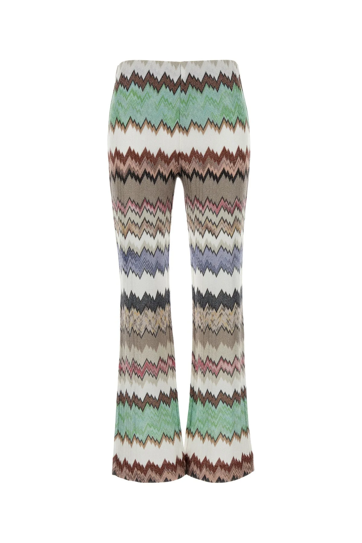 Pant realized in viscose with lurex threads characterized by chevron motif embroidery on the entire surface. - Elastic waist - Flared hemline DETAILS Embroidered viscose pant Exterior: 83% Viscose 17% Metallic fiber Made in italy Sample size: 40