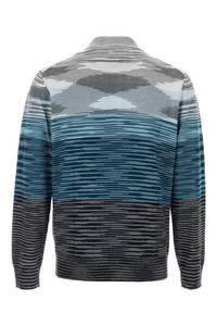 Long-sleeves polo shirt realized in pure wool characterized by peculiar striped embroidery on the entire surface. - Collar - Partial buttons closure - Ribbed cuffs and hemline DETAILS Embroidered wool polo shirt Exterior: 100% Wool Made in italy Sample size: 48