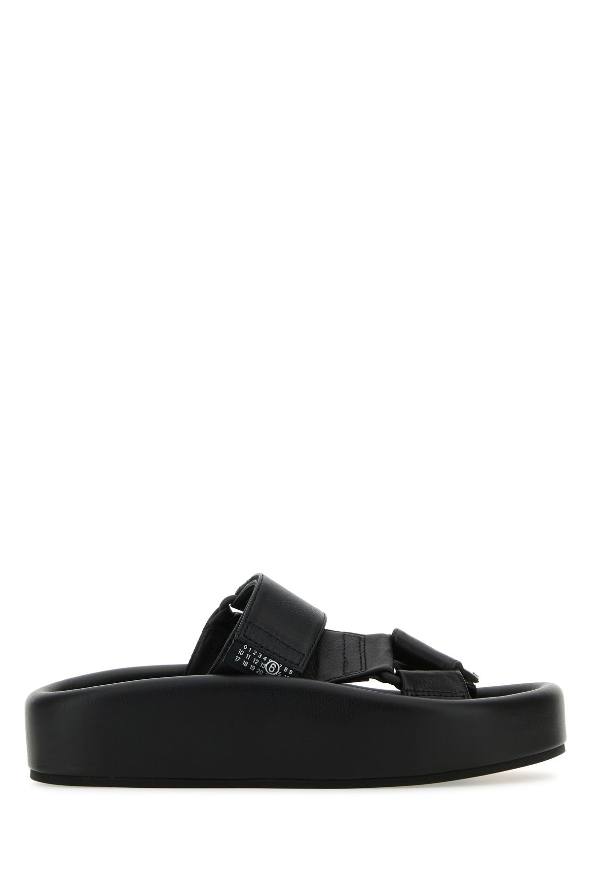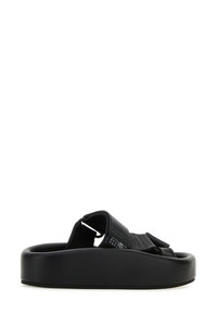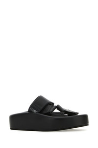 Slippers realized in slightly pebble ovine leather characterized by velcro straps on the instep enriched by logoed label on the side. - Round toe - Printed logo on the inside - Platform DETAILS Exterior: 100% Ovine leather Interior: 60% Polyurethane 40% Polyester Sole: Rubber Made In Spain Platform height: 3 cm