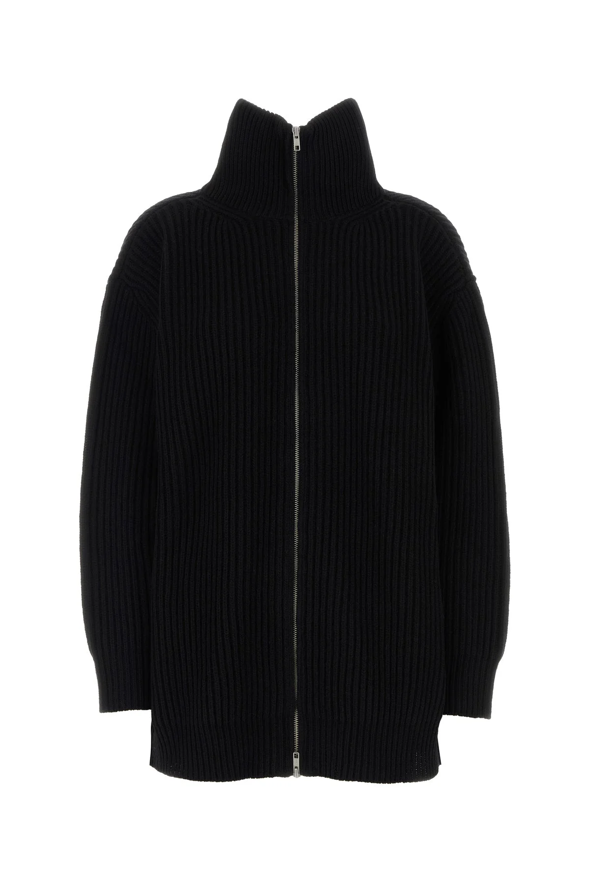 Oversize cardigan realized in ribbed wool blend characterized by iconic contrasting stitching at the back. - Funnel neck - Zip closure DETAILS Black wool blend oversize cardigan Exterior: 61% Wool 20% Viscose 18% Nylon 1% Elastane Made in italy Sample size: S