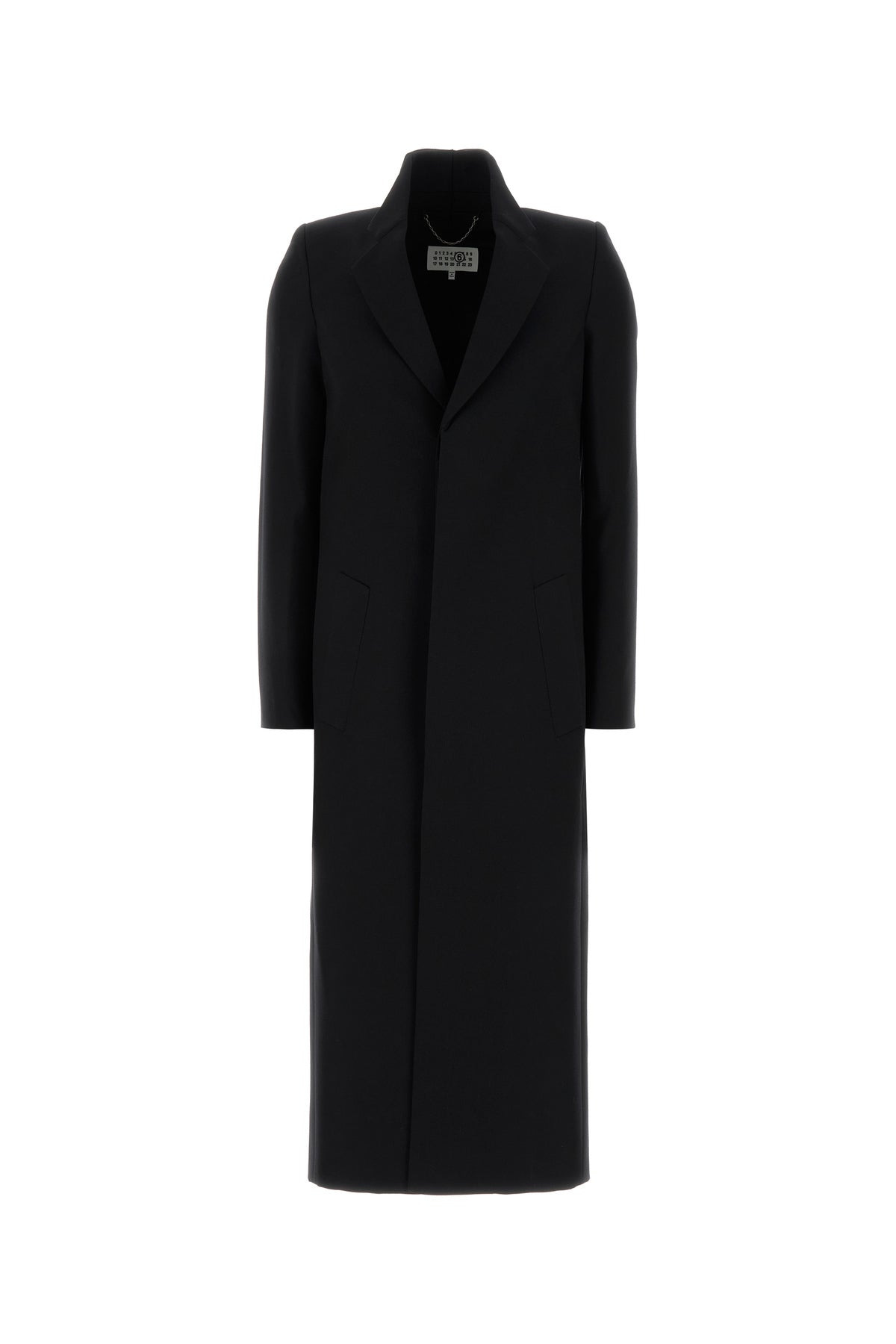 Coat realized in pure virgin wool characterized by iconic contrasting stitching at the back. - Lapels - Concealed buttons closure - Two slit pockets at the front - Lined interior with a slit pocket DETAILS Black wool coat Exterior: 100% Virgin wool Lining: 100% Viscose Made in italy Sample size: 38