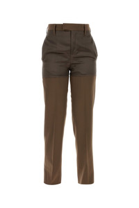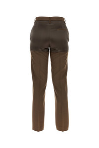 Pant realized in polyester blend with contrasting insert at the top. - Belt loops at the waist - Concealed zip and hook closure - Seam pockets - Central ironed pleats DETAILS Brown polyester blend pant Exterior: 55% Polyester 45% Virgin wool Made in italy Sample size: 38