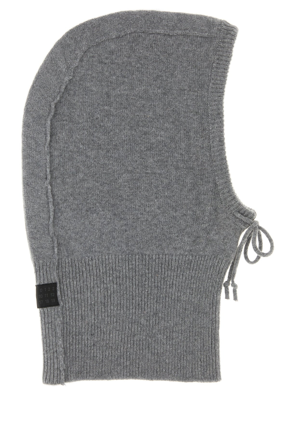 Balaclava realized in wool blend enriched by logoed label at the back. - Drawstring - Ribbed hemline DETAILS Grey wool blend balaclava Exterior: 80% Wool 20% Nylon Made in italy