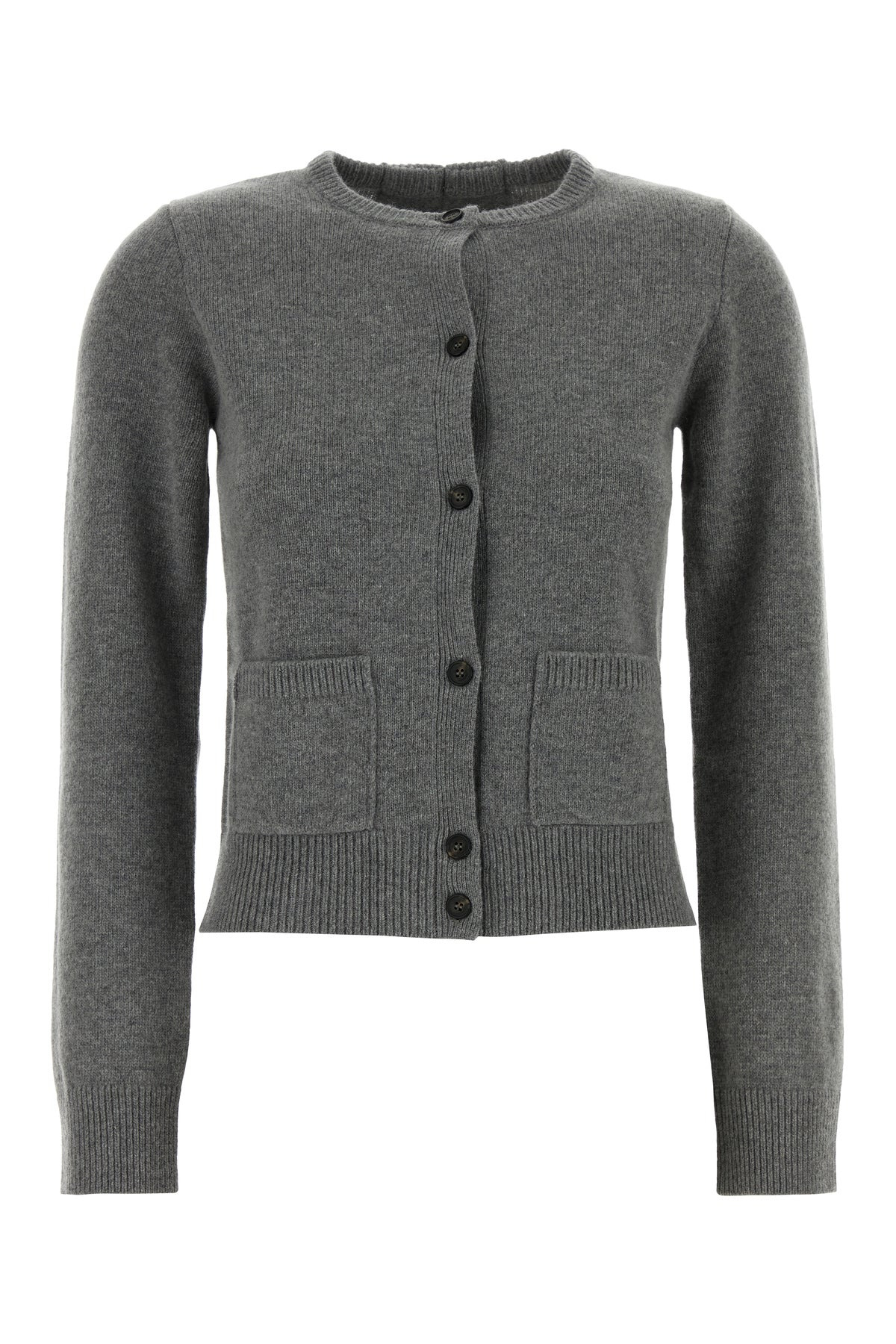 Cardigan realized in wool blend enriched by logoed labels at the back. - Crew-neck - Buttons closure - Two patch pockets at the front - Ribbed cuffs and hemline DETAILS Grey wool blend cardigan Exterior: 80% Wool 20% Nylon Made in italy Sample size: S