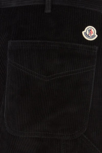 Pant realized in pure cotton corduroy enriched by contrasting logoed patch at the back. - Drawstring at the waist - Concealed zip and single visible button closure - Five classic pockets DETAILS Black corduroy pant Exterior: 100% Cotton Made in romania Sample size: 48