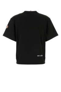 T-shirt realized in pure cotton characterized by contrasting rubber printed logo on the chest and contrasting rubber logoed print at the back enriched by contrasting logoed patch on the sleeve. - Ribbed crew-neck and hemline DETAILS Black cotton t-shirt Exterior: 100% Cotton Made in turkiye Sample size: XS