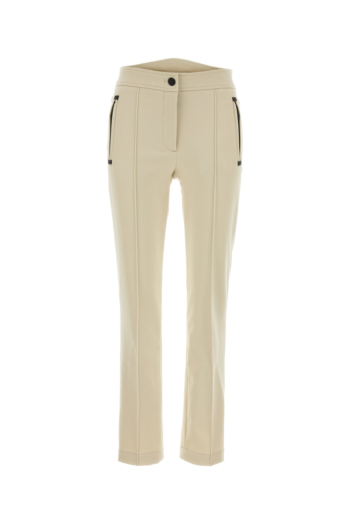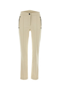 Pant realized in stretch polyester blend enriched by logoed patch at the back. - Concealed zip and single visible button closure - Seam pockets - Central seamed pleats DETAILS Ivory stretch polyester blend pant Exterior: 71% Polyester 23% Viscose 6% Elastane Made in romania Sample size: 40
