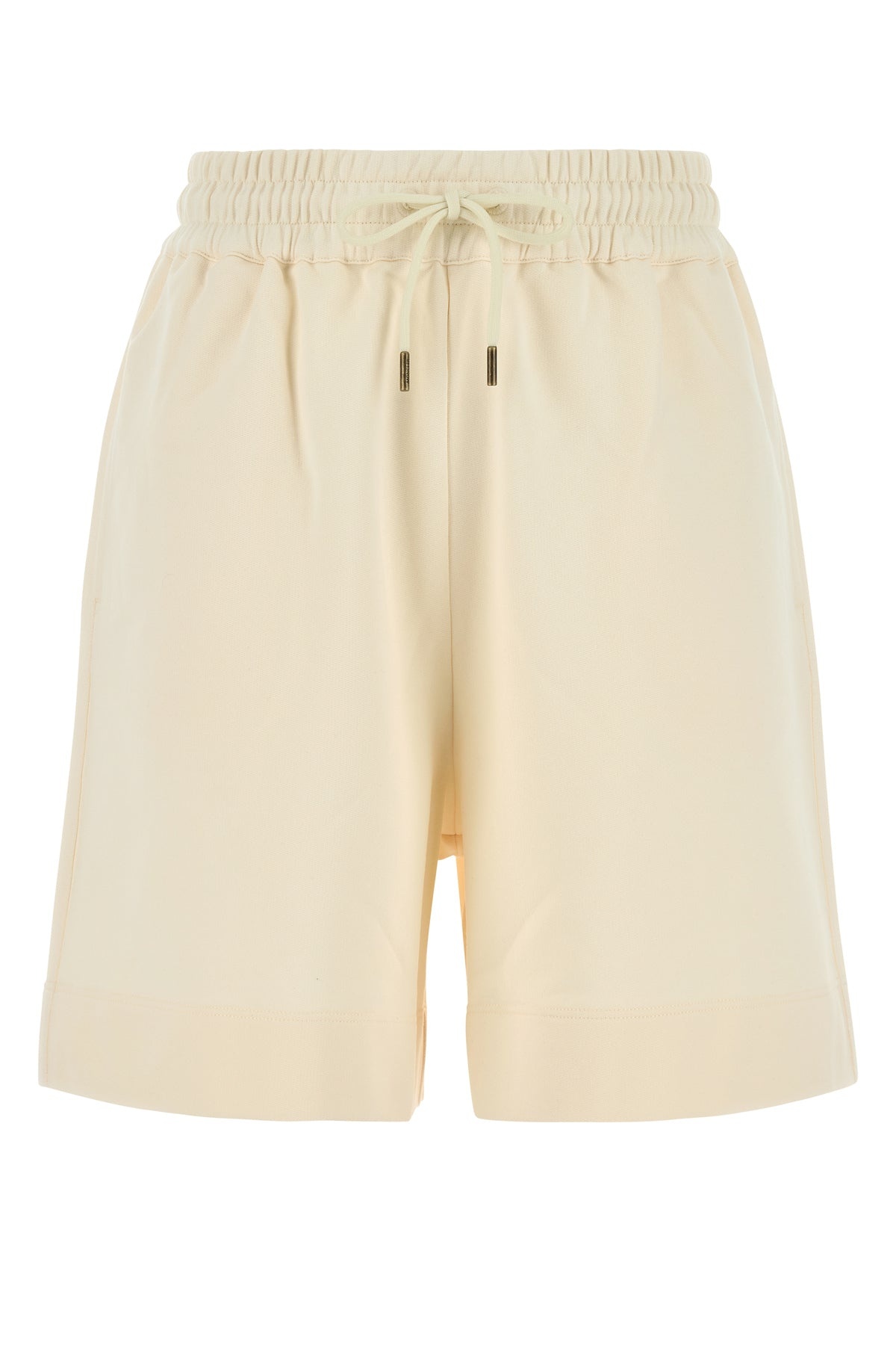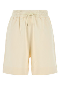 Bermuda shorts realized in pure cotton enriched by contrasting logoed patch at the back. - Elastic waist with drawstring - Seam pockets DETAILS Ivory cotton bermuda shorts Exterior: 100% Cotton Made in turkiye Sample size: XS