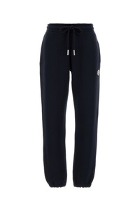 Joggers realized in cotton blend enriched by contrasting logoed label at the front. - Elastic waist with drawstring - Seam pockets - Elastic cuffs DETAILS Midnight blue cotton blend joggers Exterior: 85% Cotton 15% Nylon Made in turkiye Sample size: XS