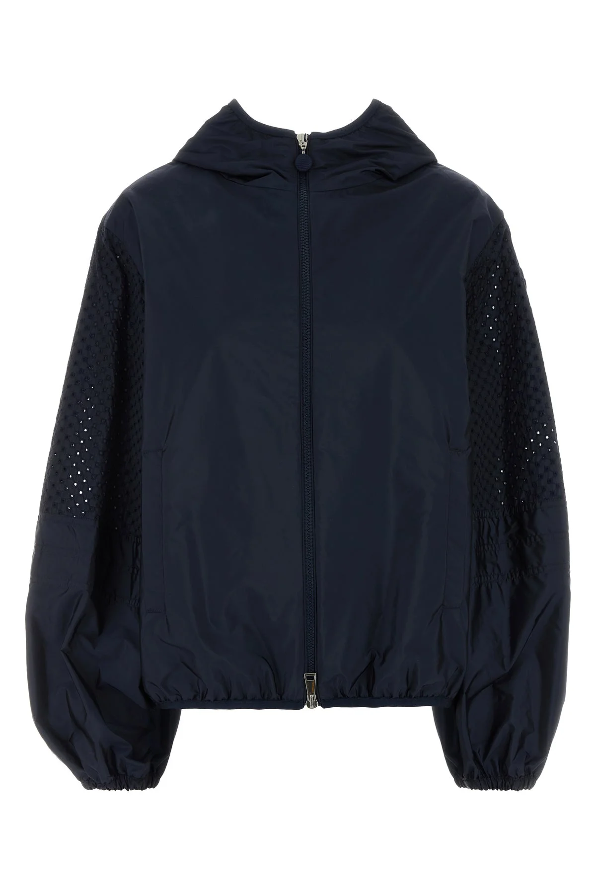 Jacket realized in nylon characterized by peculiar embroideries enriched by logoed patch on the sleeves. - Hood - Zip closure - Two slit pockets at the front - Elastic cuffs - Unlined DETAILS Navy blue nylon Zelkova jacket Exterior: 100% Nylon Lining: 100% Nylon Made in romania Sample size: 1