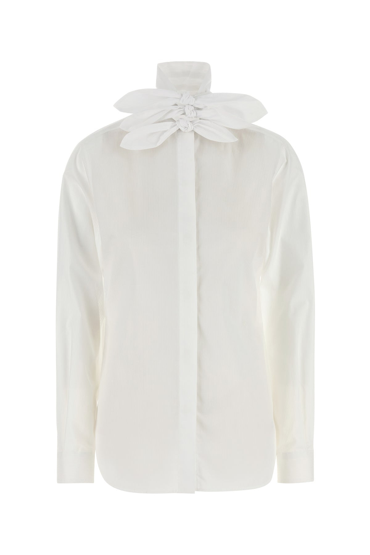 Short realized in pure cotton characterized by striped embroidery and tonal embroidered logo at the front. - Lace to tie on the neck - Concealed buttons closure - Angle cuffs with buttons DETAILS Embroidered cotton shirt Exterior: 100% Cotton Made in hungary Sample size: 38