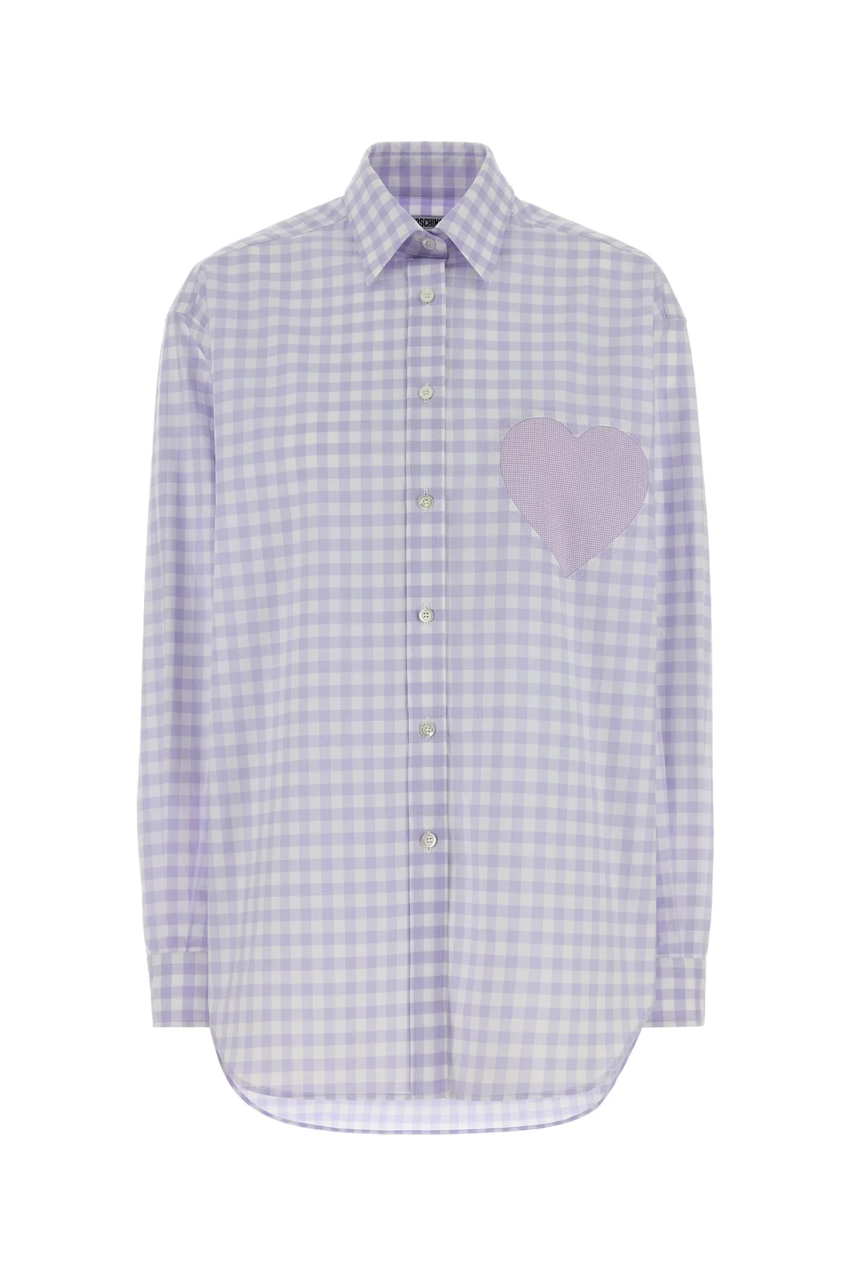 Oversize shirt realized in pure cotton poplin characterized by checked embroidery on the entire surface and Moschino embroidery at the back enriched by Heart patch on the chest. - Short-pointed collar - Buttons closure - Buttoned rounded cuffs - Slightly longer back - Rear yoke DETAILS Embroidered poplin oversize shirt Exterior: 100% Cotton Made in italy Sample size: S