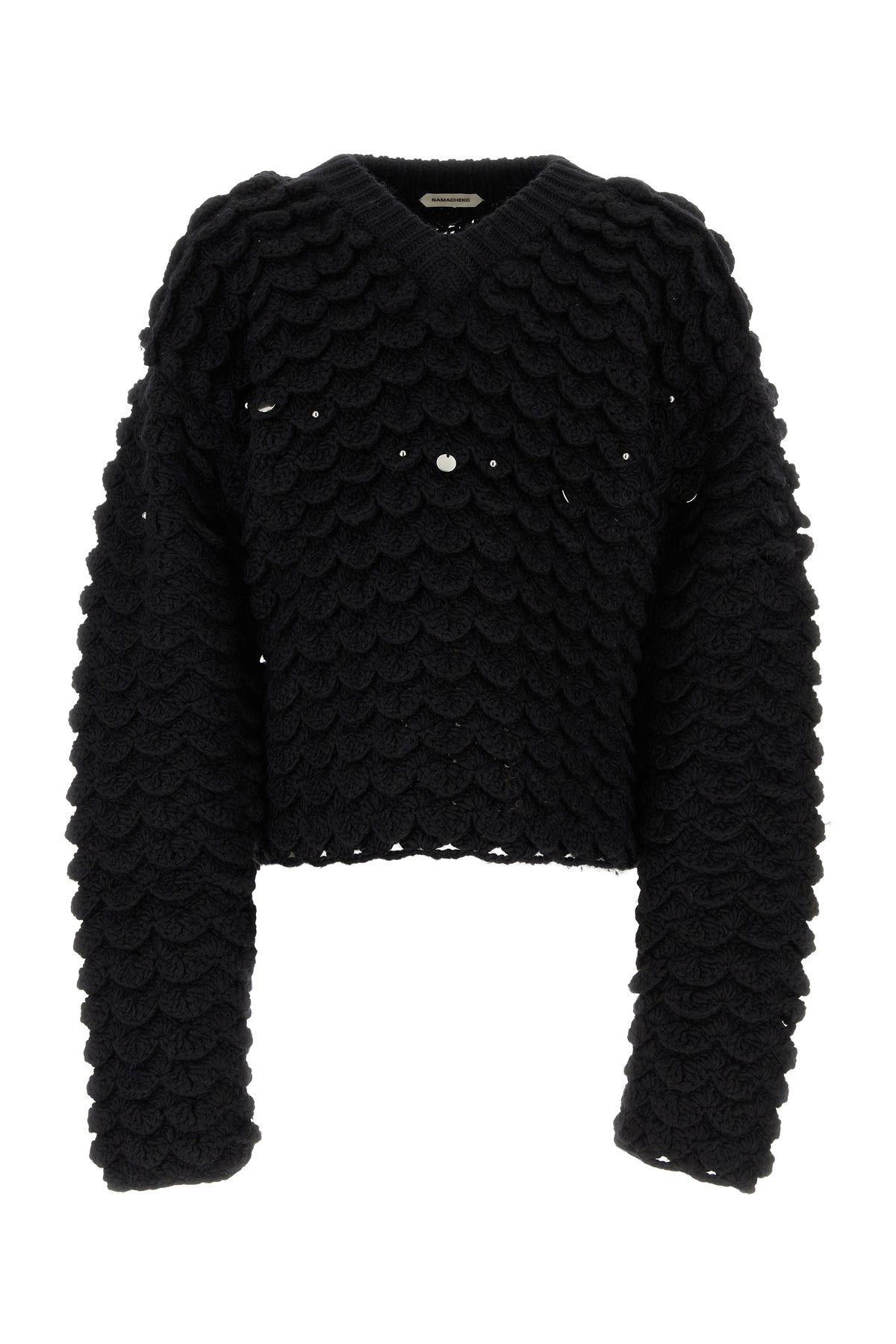Sweater realized in wool blend enriched by peculiar metal details at the front and the back. - V neckline DETAILS Exterior: 45% Wool 25% Alpaca 30% Acrylic Made In Belgium Sample size: S