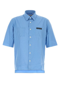 Short-sleeves shirt realized in pure cotton poplin enriched by contrasting logoed label on the chest. - Short-pointed collar - Buttons closure - Two chest pockets - Lateral slits on the hemline - Rear yoke - Slightly longer back DETAILS Cerulean blue poplin Guardia shirt Exterior: 100% Cotton Made in italy Sample size: M