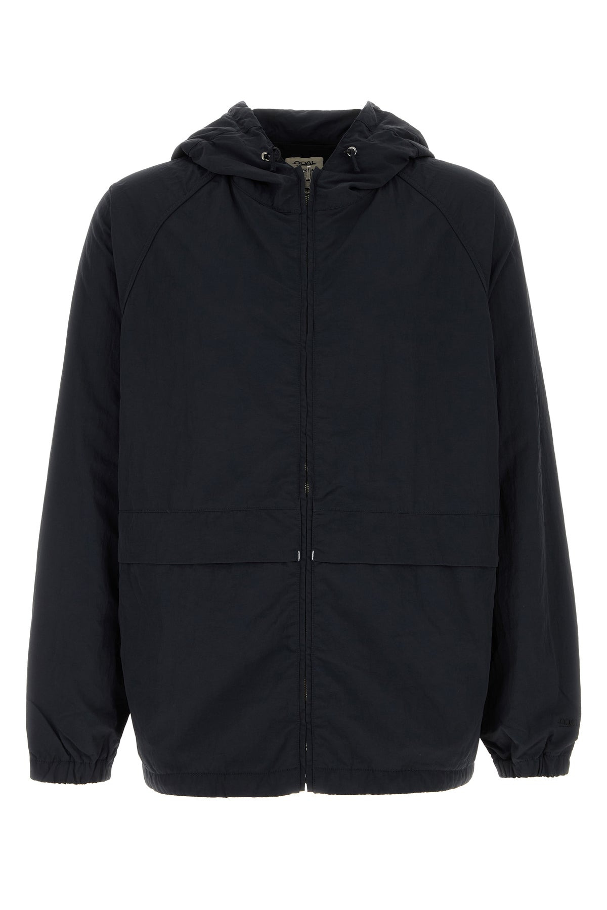 Jacket realized in nylon. - Drawstring hood - Concealed zip closure - Two slit pockets at the front - Gathered elastic cuffs - Drawstring hemline - Lined DETAILS Black nylon jacket Exterior: 100% Nylon Lining: 100% Polyester Made in china Sample size: M