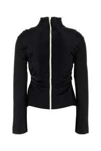 Blouse realized in satin characterized by central ironed pleat. - High collar - Concealed zip closure at the back - Gatherings on the sides - Central slit on the hemline DETAILS Black satin Domini blouse Exterior: 100% Acetate Made in china Sample size: S