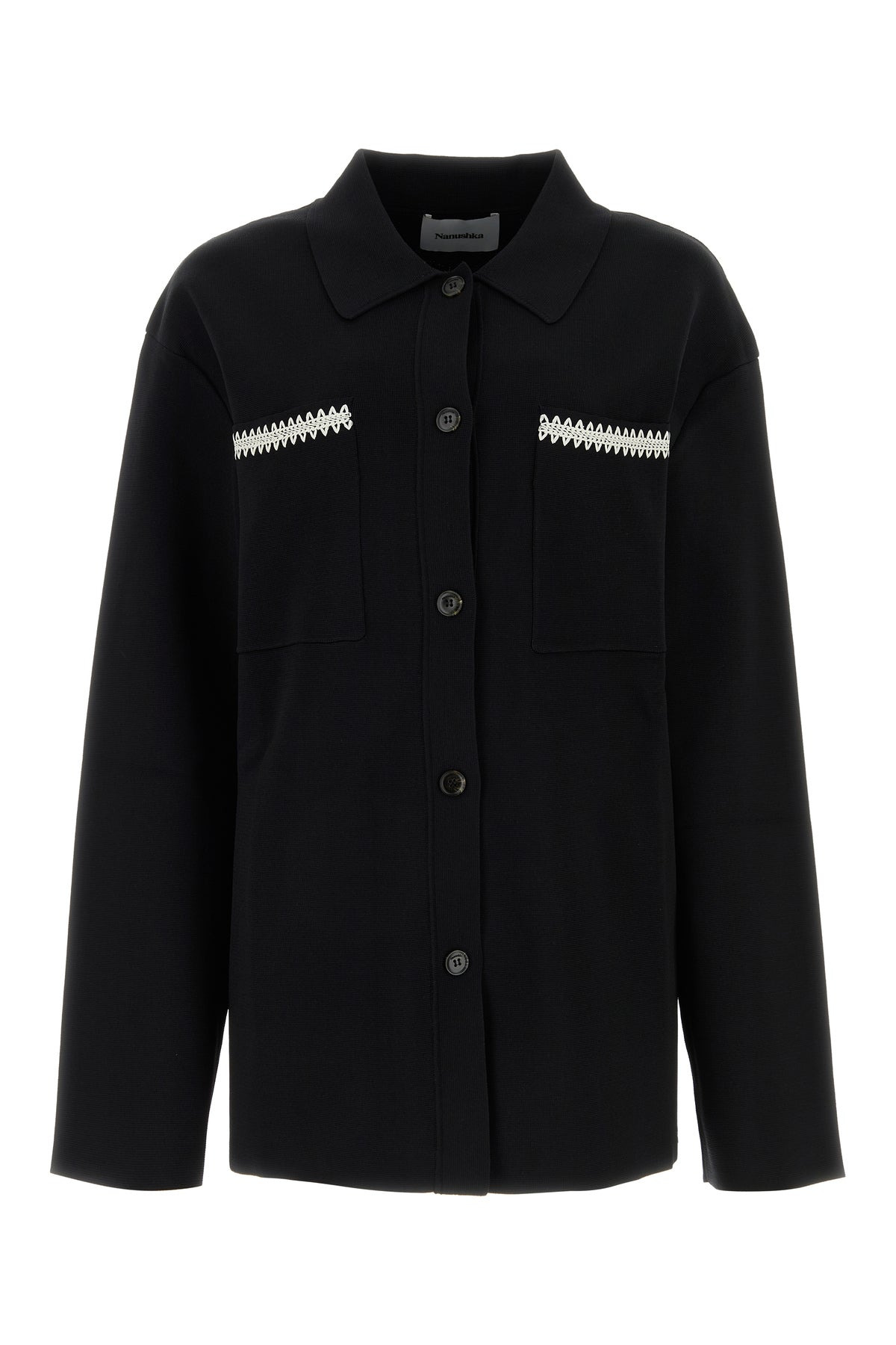 Shirt realized in stretch viscose blend characterized by contrasting embroideries at the front and on the sides. - Short-pointed collar - Buttons closure - Chest pockets - Buttoned angle cuffs DETAILS Exterior: 52% Viscose 46% Nylon 2% Elastan Made In China Sample size: M