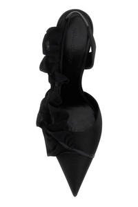Slingback realized in satin enriched by tonal peculiar fabric patch on the side. - Pointed toe - Embossed logo on the inside - Peculiar heel DETAILS Exterior: 100% Fabric Interior: 100% Fabric 100% Leather Sole: Leather Made In Italy Heel height: 11 cm