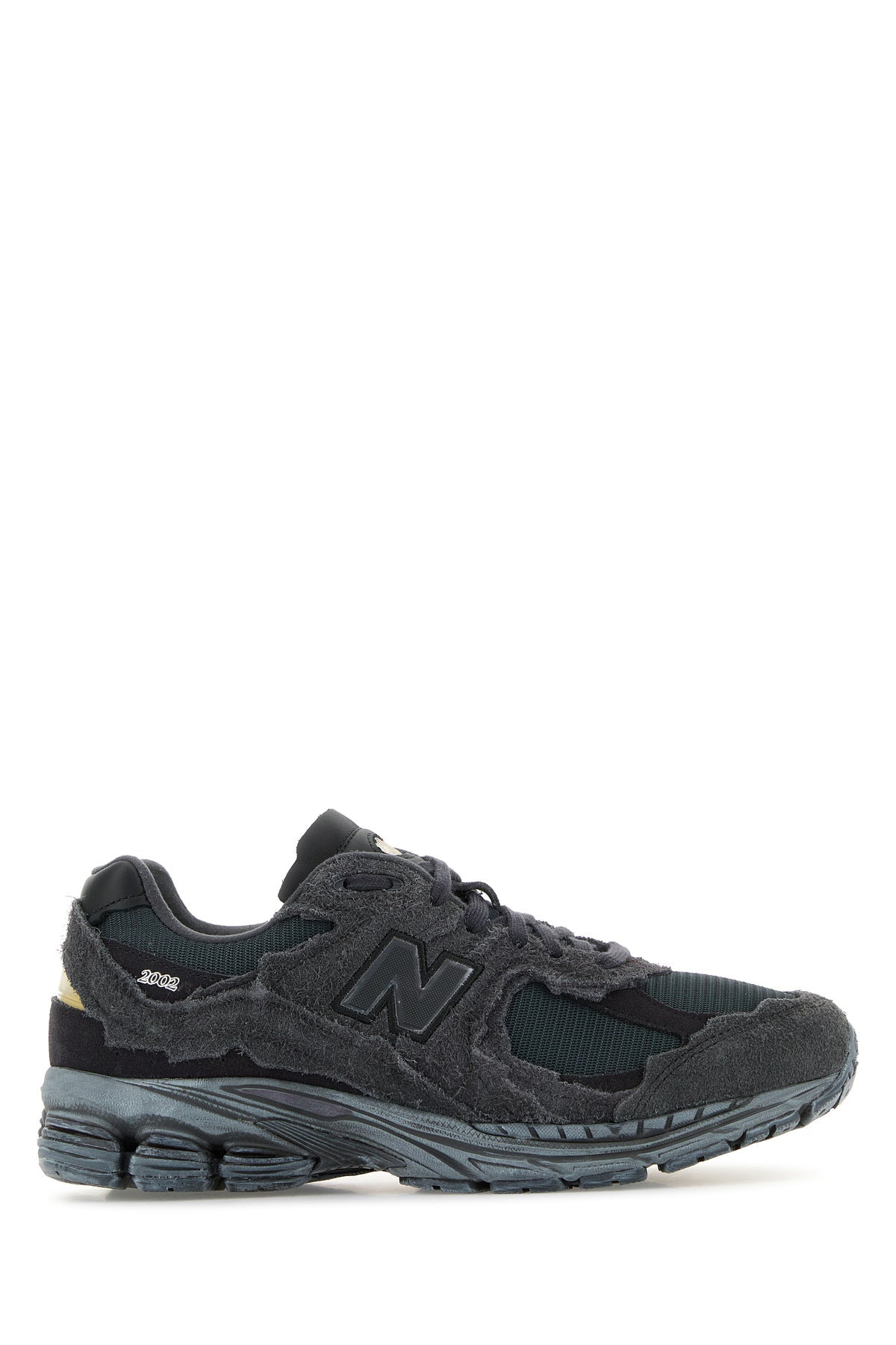 Sneakers realized in suede and mesh characterized by printed logo at the back enriched by logoed patch on the sides. - Lace-up closure - Logoed patch on the padded tongue - Padded ankle - Printed logo on the inside - Moulded sole DETAILS Dark grey suede and mesh 2002R sneakers Exterior: 100% Leather 100% Fabric Interior: 100% Fabric Sole: Rubber Made in china