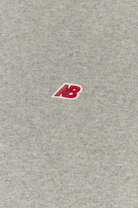 Sweatshirt realized in cotton blend characterized by contrasting NB embroidery on the chest. - Drawstring hood - A pouch pocket - Ribbed cuffs and hemline DETAILS Melange grey cotton blend sweatshirt Exterior: 95% Cotton 5% Elastane Made in usa Sample size: M