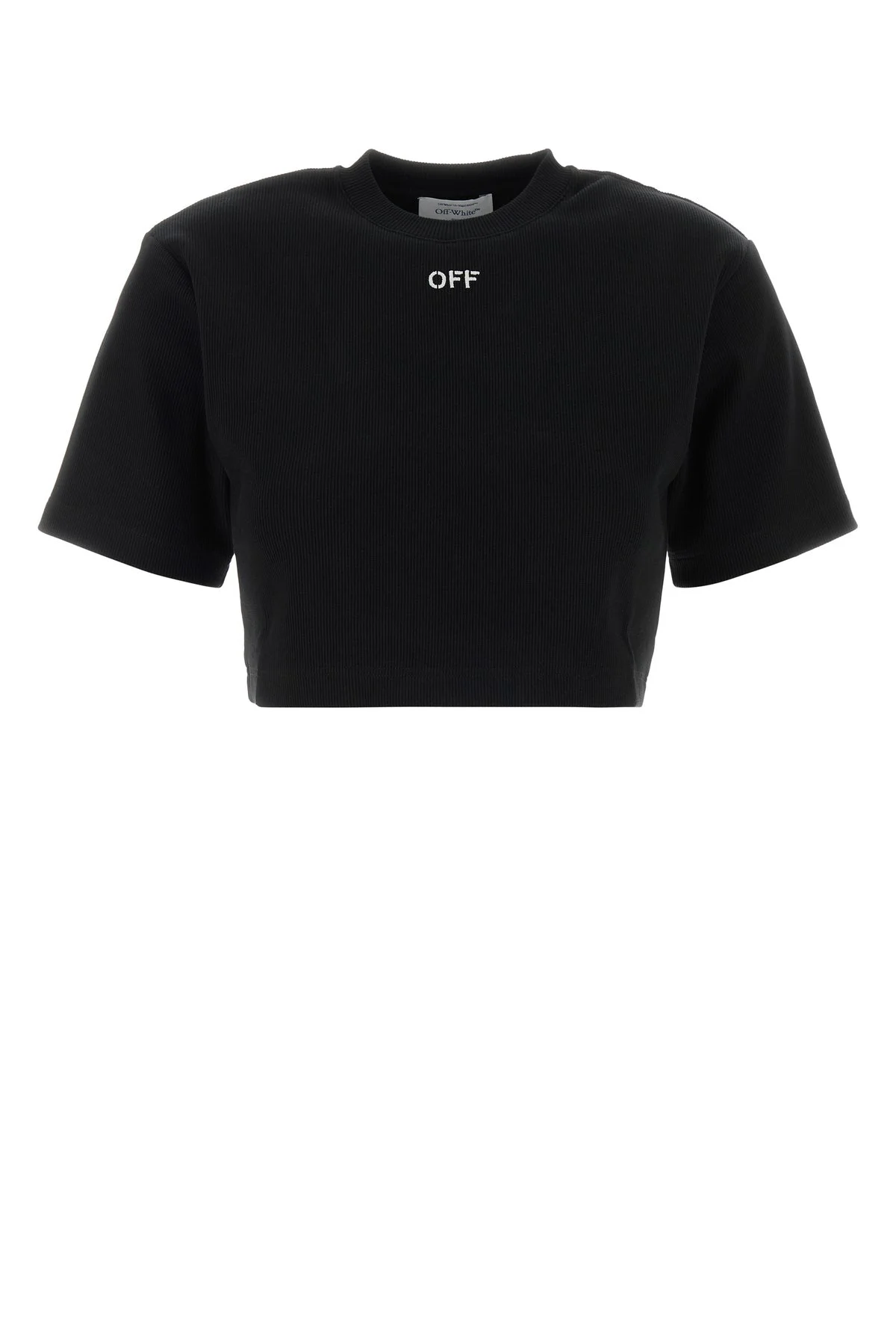 Short-cut t-shirt realized in stretch cotton characterized by contrasting embroidered logo on the chest. - Ribbed crew-neck DETAILS Black stretch cotton t-shirt Exterior: 98% Cotton 2% Elastane Made in italy Sample size: XS