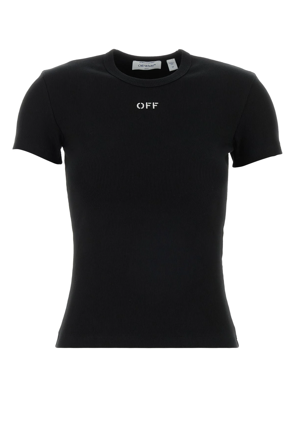 T-shirt realized in stretch cotton characterized by contrasting embroidered logo on the chest. - Ribbed crew-neck DETAILS Black stretch cotton t-shirt Exterior: 98% Cotton 2% Elastane Made in italy Sample size: 38