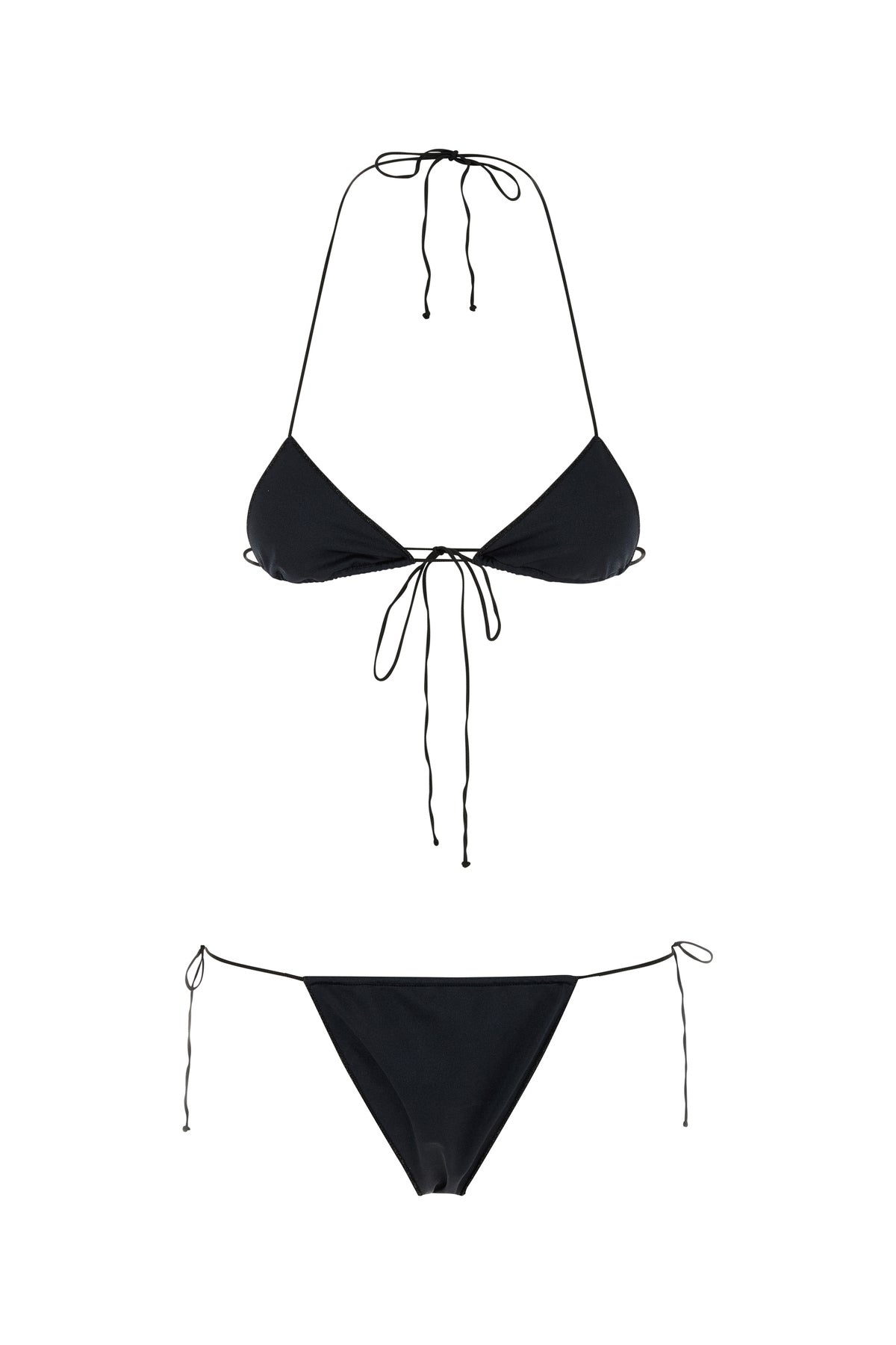 Bikini realized in stretch nylon enriched by rhinestone logo at the back. - Triangle bikini top - Adjustable bikini bottom - Lined DETAILS Black stretch nylon bikini Exterior: 80% Nylon 20% Elastane Lining: 80% Nylon 20% Elastane Made in italy Sample size: S