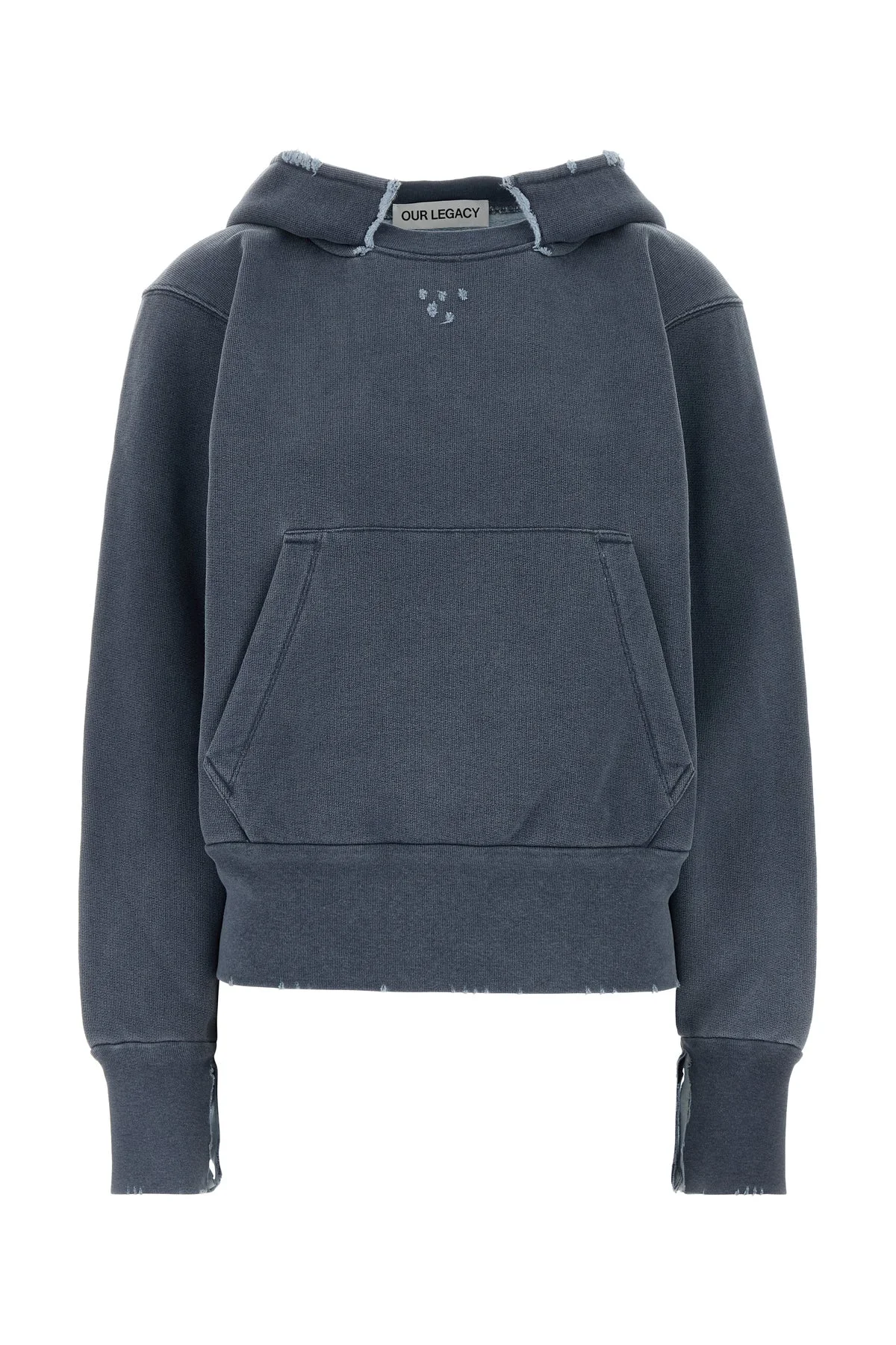 Sweatshirt realized in stonewashed and distressed pure cotton with intentional rips. - Hood - Pouch pocket - Ribbed cuffs and hemline DETAILS Air force blue cotton sweatshirt Exterior: 100% Cotton Made in portugal Sample size: 48
