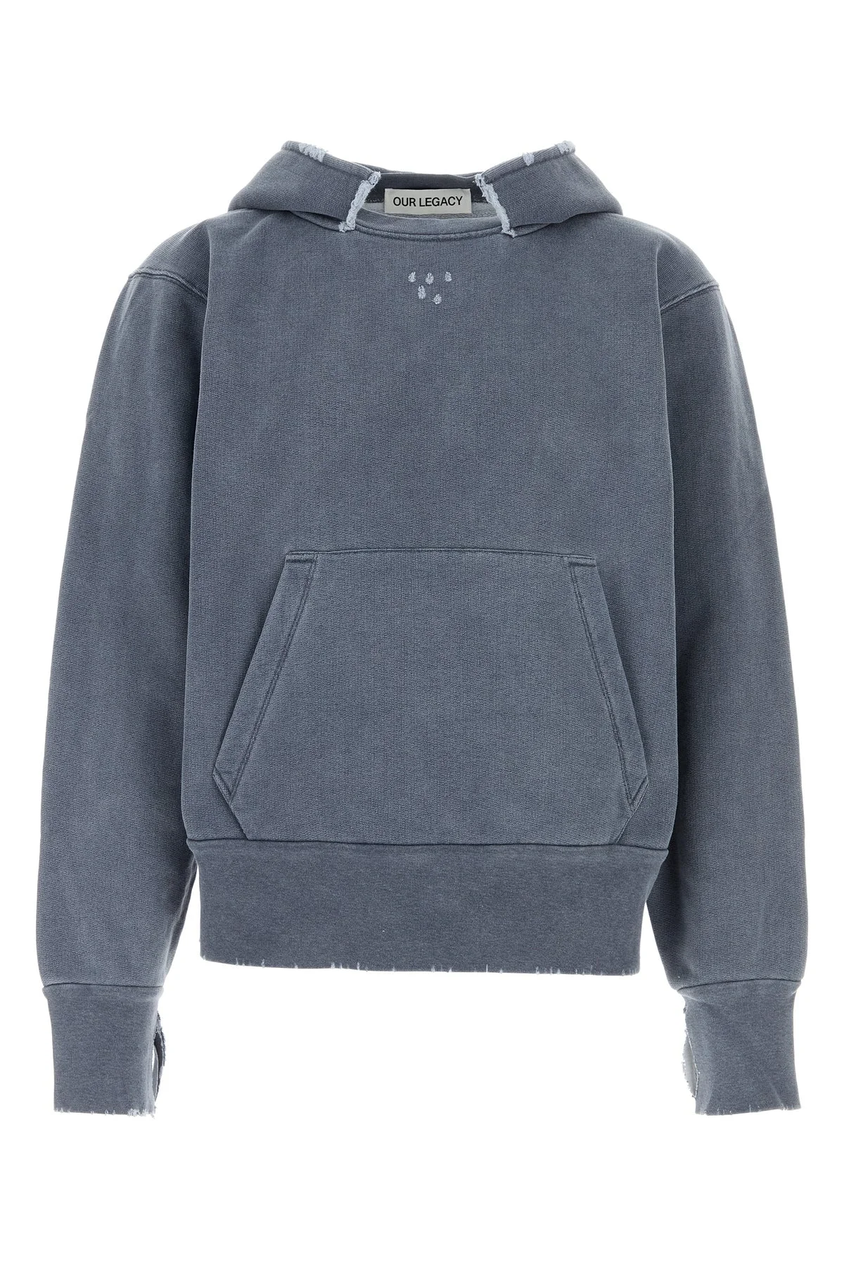 Sweatshirt realized in stonewashed and distressed pure cotton with intentional rips. - Hood - Pouch pocket - Ribbed cuffs and hemline DETAILS Air force blue cotton sweatshirt Exterior: 100% Cotton Made in portugal Sample size: 48