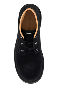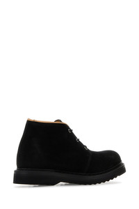 Ankle boots realized in suede enriched by logoed metal plate on the tongue. - Round toe - Lace-up closure - Embossed logo on the inside DETAILS Black suede Chukka ankle boots Exterior: 100% Suede Interior: 100% Leather Sole: Rubber Made in portugal