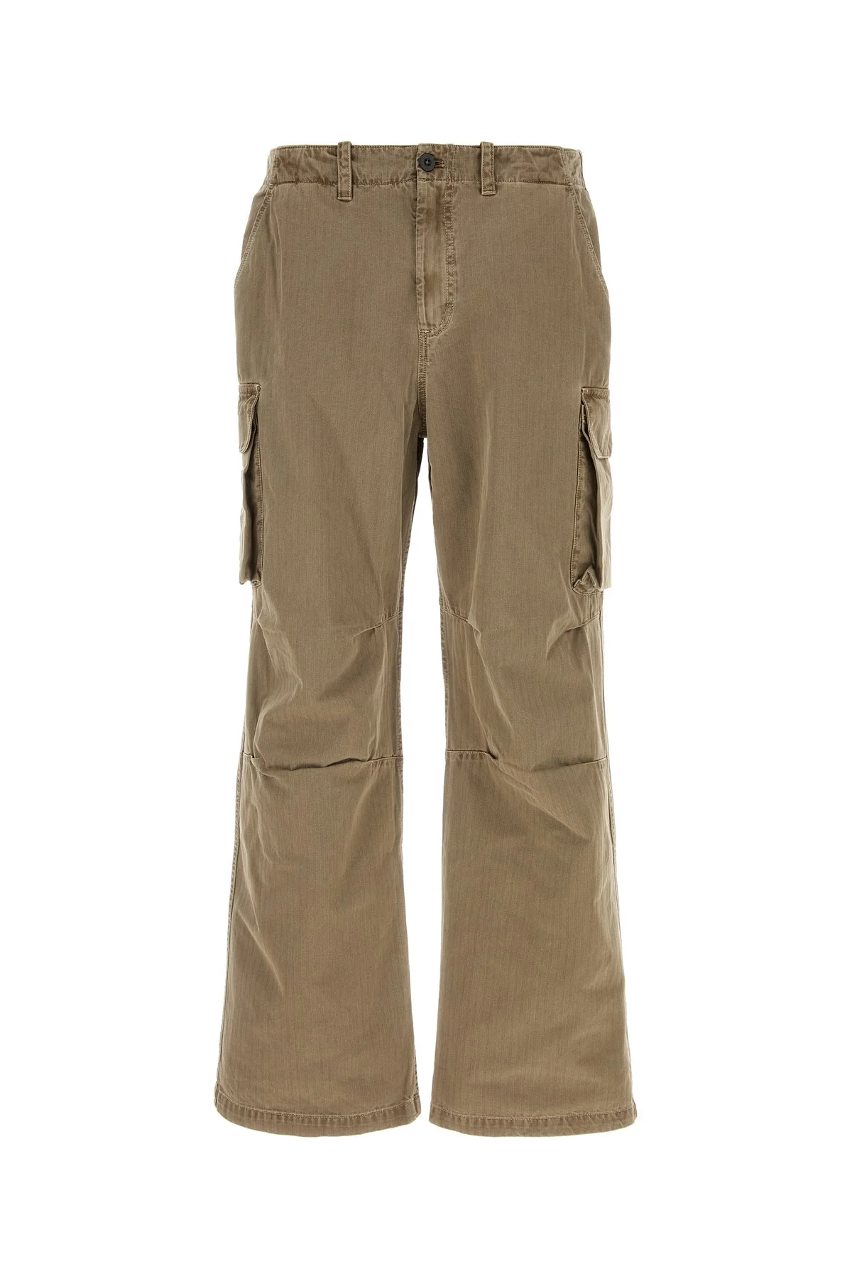Cargo pant realized in pure cotton. - Belt loops at the waist - Concealed zip and a single visible button closure - Slant pockets. two cargo pockets on the sides and a flap pocket at the back DETAILS Mud cotton cargo pant Exterior: 100% Cotton Made in portugal Sample size: M
