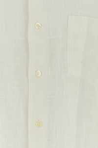 Shirt realized in pure cotton enriched by a chest pocket. - Short-pointed collar - Buttons closure at the front - Drop shoulders - Rounded cuffs with buttons - Rounded hemline - Rear yoke and placket DETAILS White cotton Coco shirt Exterior: 100% Cotton Made in portugal Sample size: 48