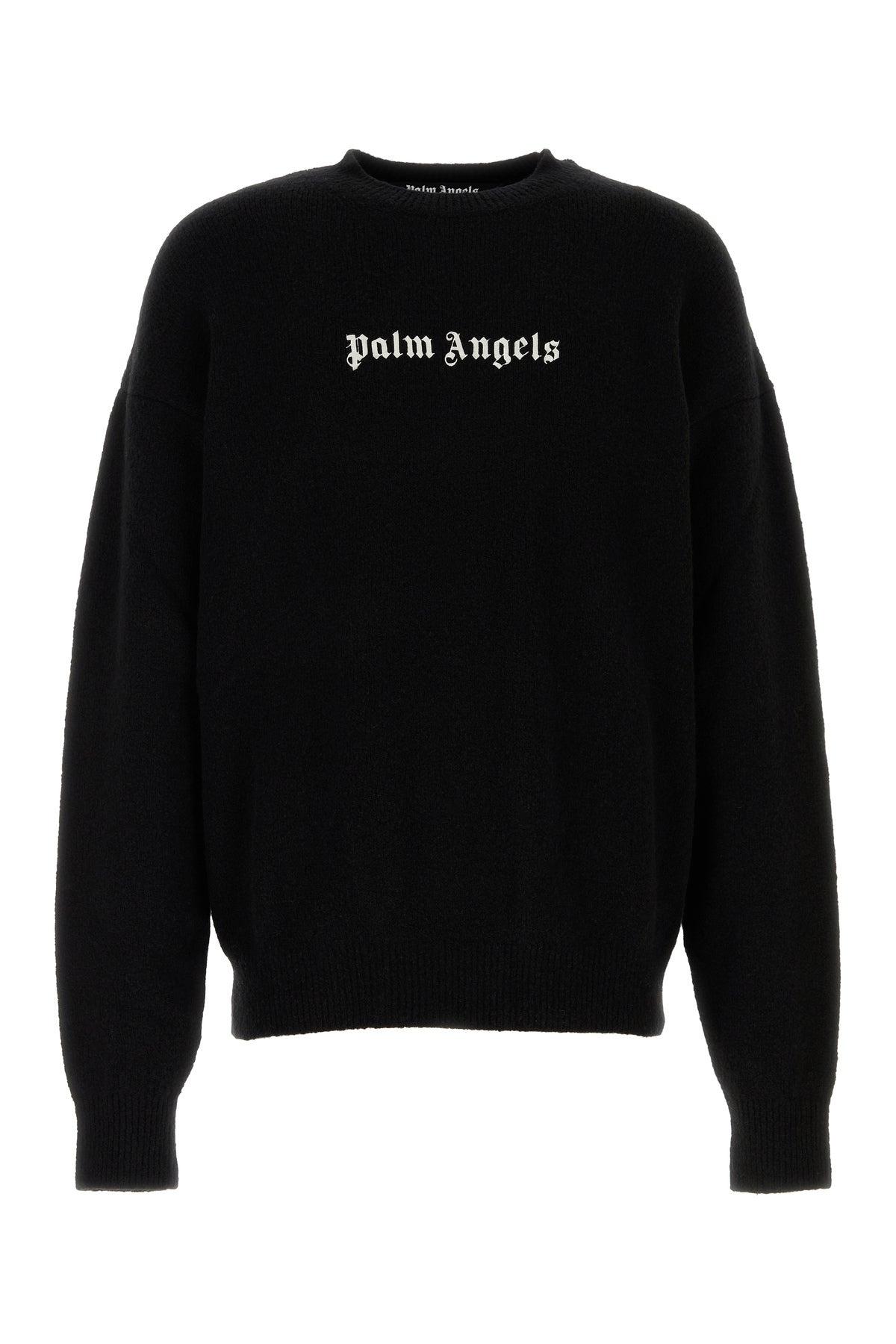 Sweater realized in stretch merino wool blend characterized by contrasting printed logo on the chest. - Ribbed crew-neck, cuffs and hemline - Logoed label on the side - Loose fit DETAILS Exterior: 72% Merino wool 20% Nylon 6% Cashmere 2% Elastane Made In Italy Sample size: M